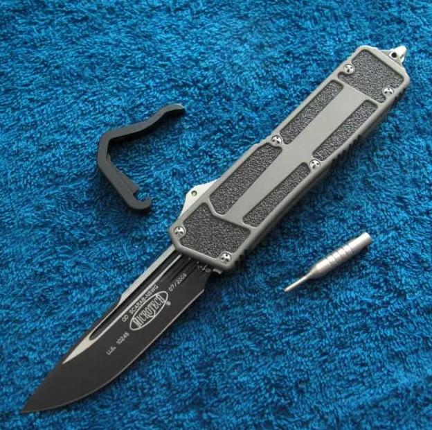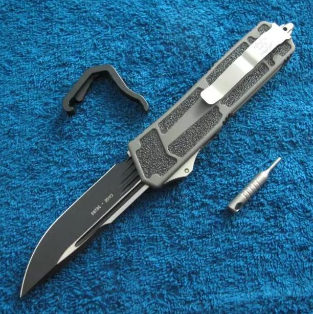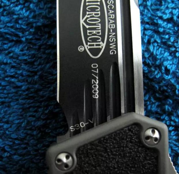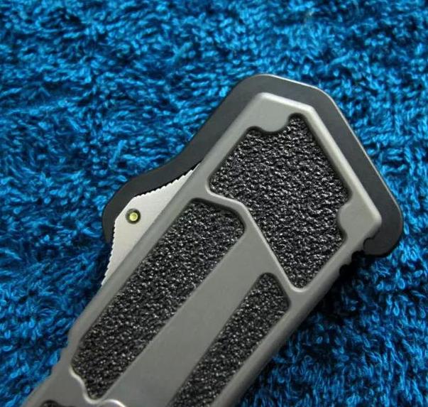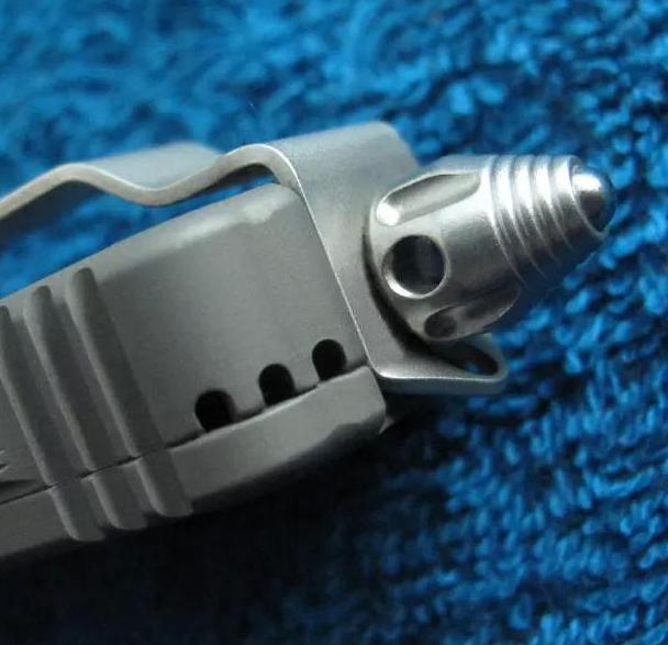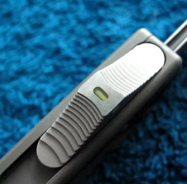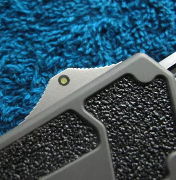 设计有排水孔(由于水下压力,没有排水孔的直跳刀无法正常弹出),推刀钮内嵌自发光氚管(便于在黑暗的水下找到推刀钮),并配有出刀口保护鞘(防止水下杂物进入刀柄)。