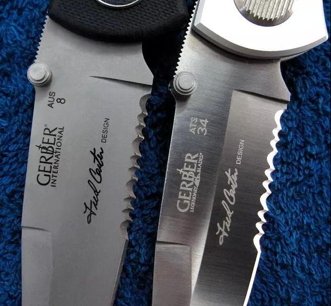 刃材:AUS-8(上)ATS-34(下)。