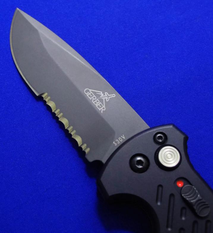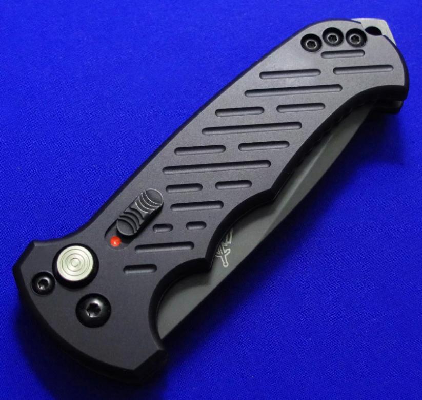 戈博巅峰期作品,已绝版。全自动战术刀分水岭,获得当年大奖,也是第一款真正意义上的全自动战术刀,影响深远,其后的全自动刀或多或少都受其影响。性能稳定,结构牢固,可长期使用而弹跳正常。 带二次保险锁(弹开、闭合态皆可保险)。