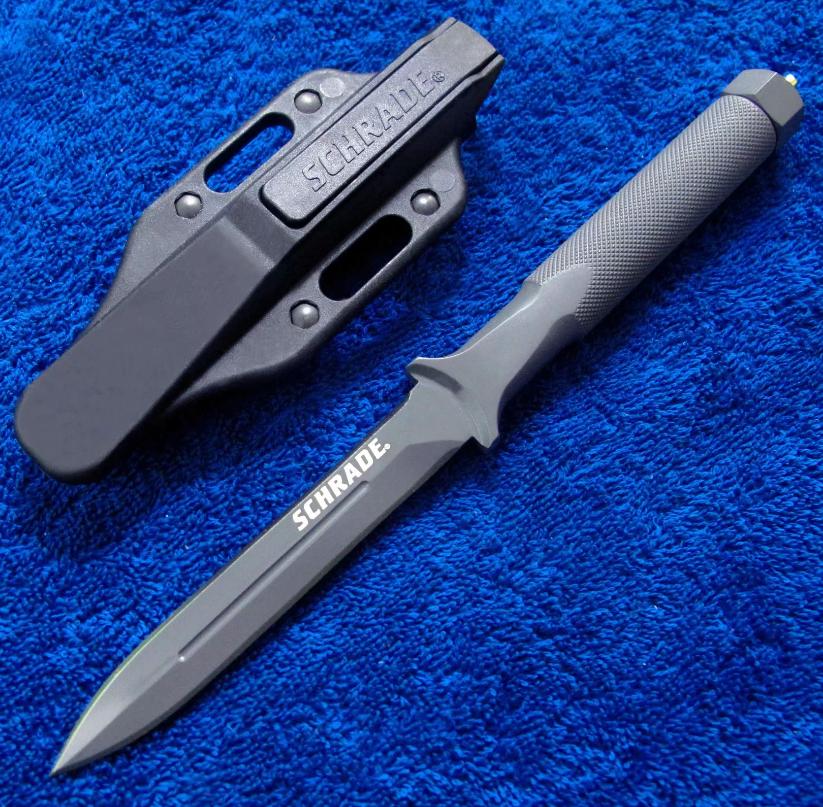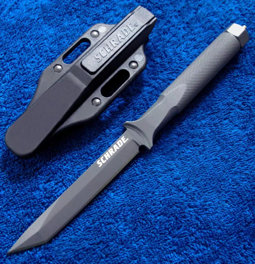 Schrade ADO 格斗刀,柄尾有破窗锥。