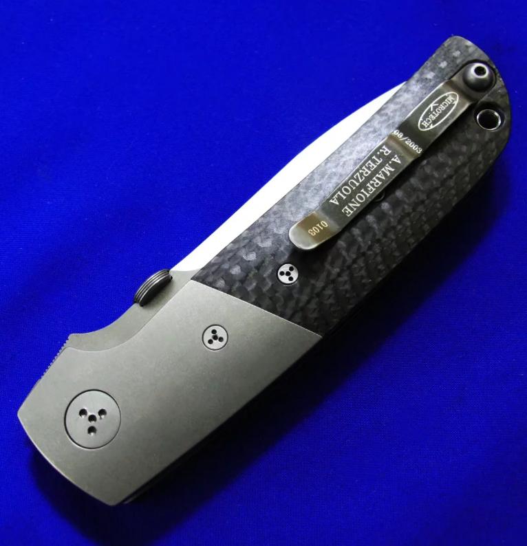 微技术 特左拉合作 绝版剑标 ATCF D/A(双动版,可手动,可自动。可以像普通折刀一样开合,也可变成全自动侧跳,有暗藏机关)。
