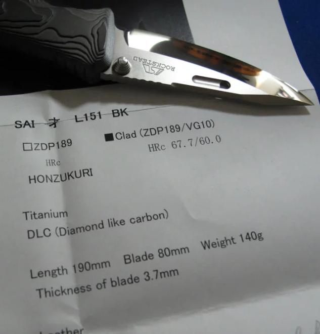 刃材:CLA189夹钢(核芯ZDP189,外包VG10)。