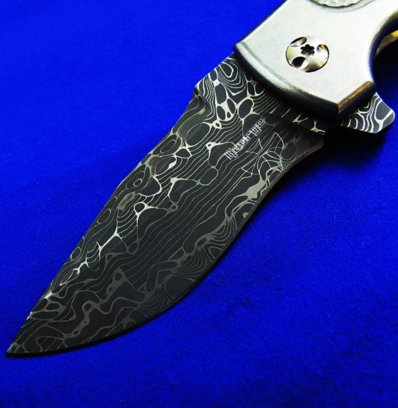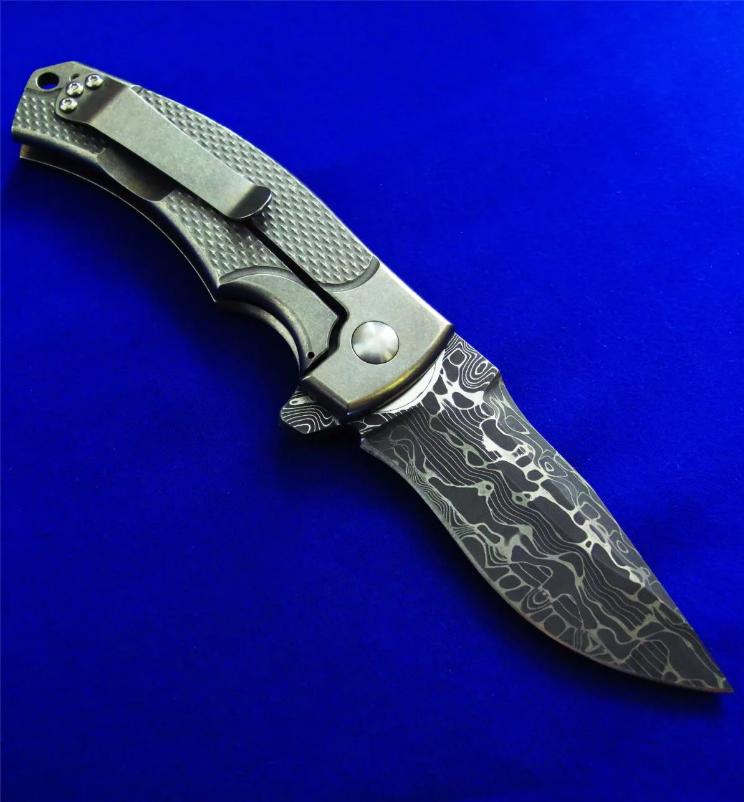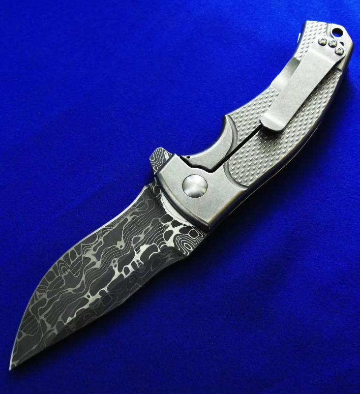 大师Les George 莱斯.乔治 大马士革 手工Flipper快开折刀(孤品唯一)