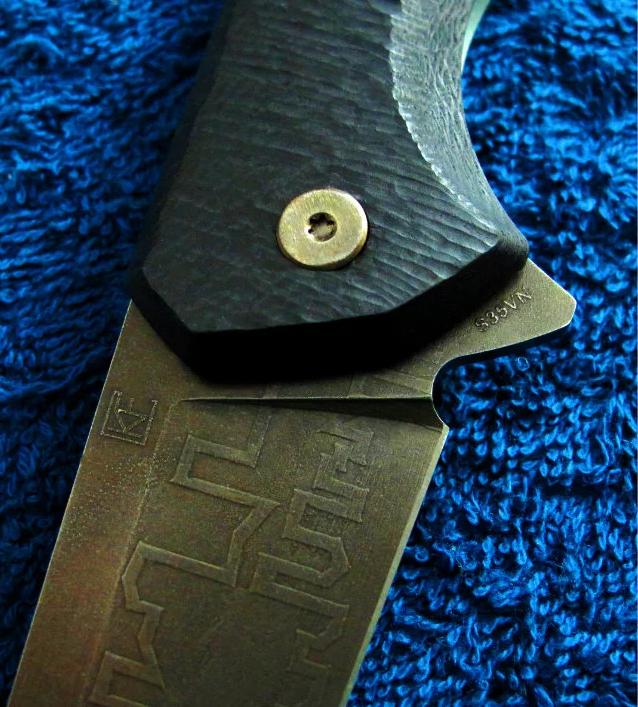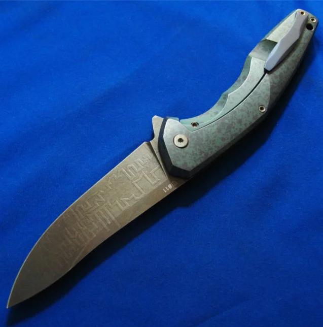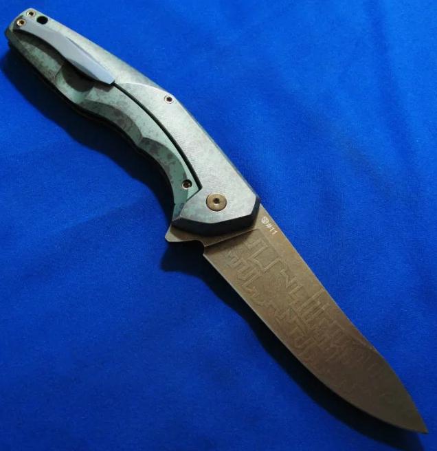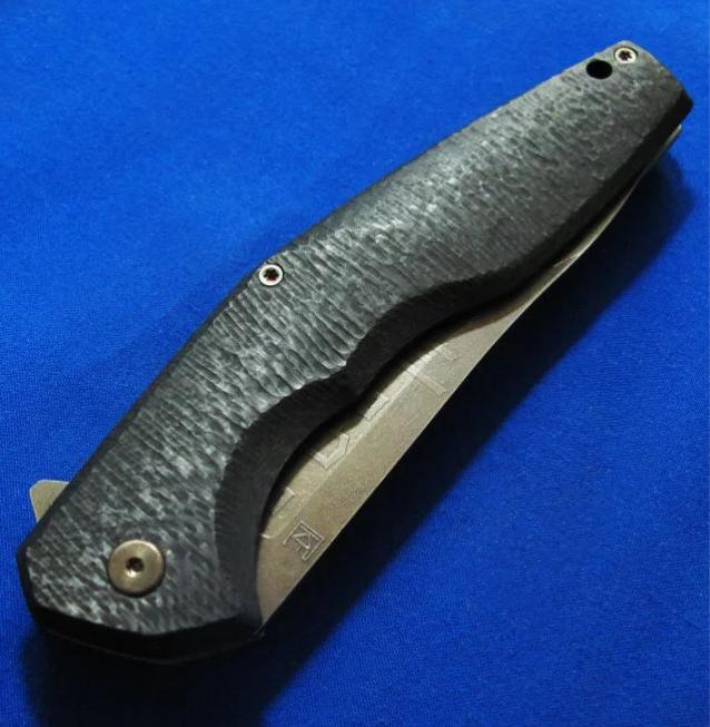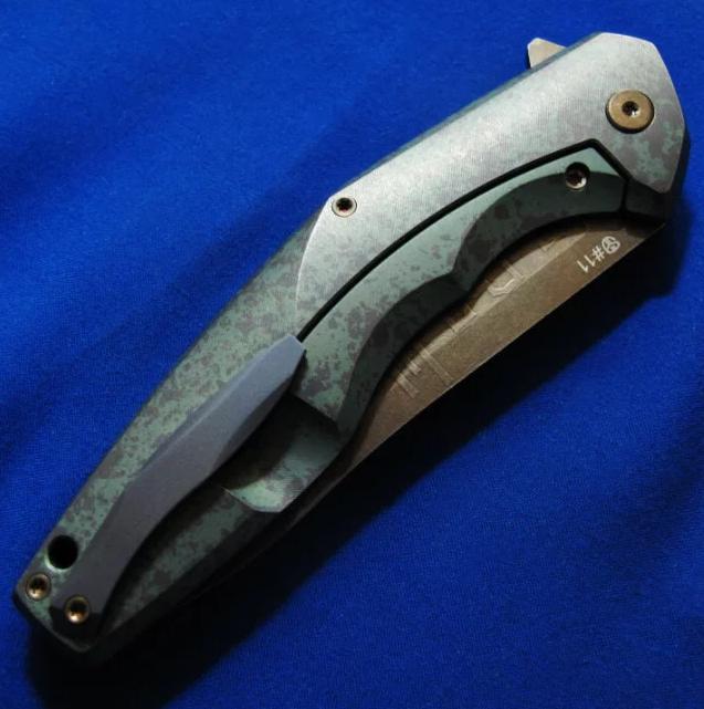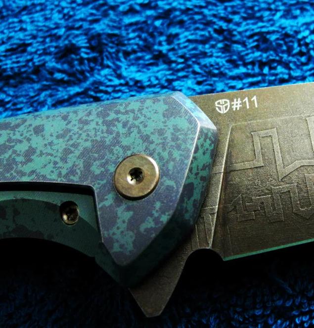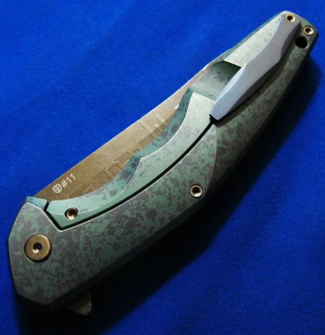 Shirogorov 席罗格洛夫(熊头)& CKF 限量合作版 Flipper快开 手工折刀 “Granite花岗岩”(限量20只,本只编号11),已绝版。全长:24.3cm。刃厚:3.2mm。刃材:S35VN。硬度:60-62。柄材:钛合金+G10。产地:俄罗斯。