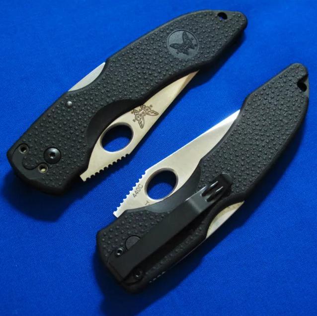 蝴蝶 10400折刀(已绝版)。蝴蝶早期经典,物美价廉,细节处理很考究(见特写图),开刀孔内圈做了倒角,腰夹安装位的螺丝孔做了嵌入式金属口。手柄是按照qiang柄的感觉做的。全长:21cm。 刃厚:3mm。 刃材:440C。 硬度:58-60。 柄材:玻璃尼龙强化纤维(qiang柄材料)。 产地:台湾。