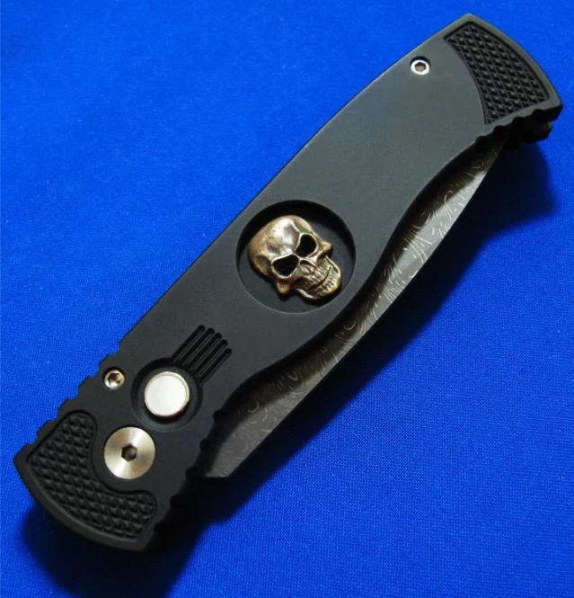 柄材:T6 6061+白银骷髅,开刀钮镶嵌白蝶贝。