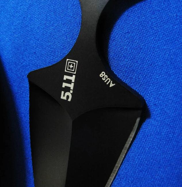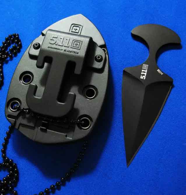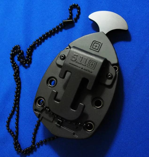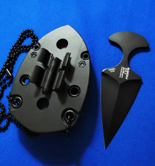 511 & Bladetech 合作 美国警察订制版 “徽后刺”(已绝版)。刀鞘上面那个翅膀状的东西,是固定警徽用的卡子。(这是个可以隐藏在警徽后面的手刺)。刀鞘可腰挂,也可颈挂。目前国内可以买到美国警徽(卖国外警徽不违法),当然也可以不挂徽直接携带,并不影响使用。全长:12cm。刃厚:3.8mm。刃材:AUS8。硬度:58-60。鞘材:K鞘。产地:台湾。