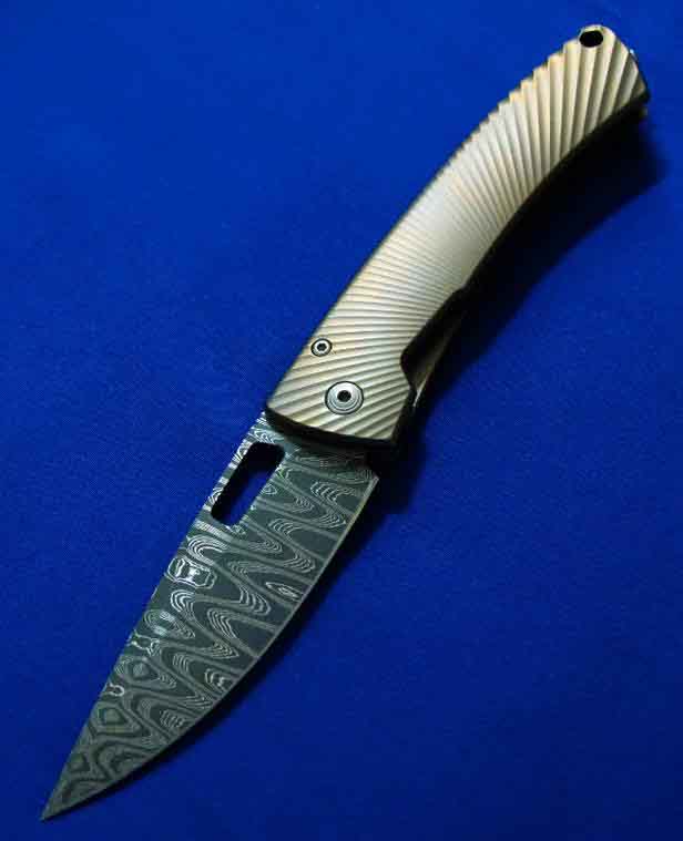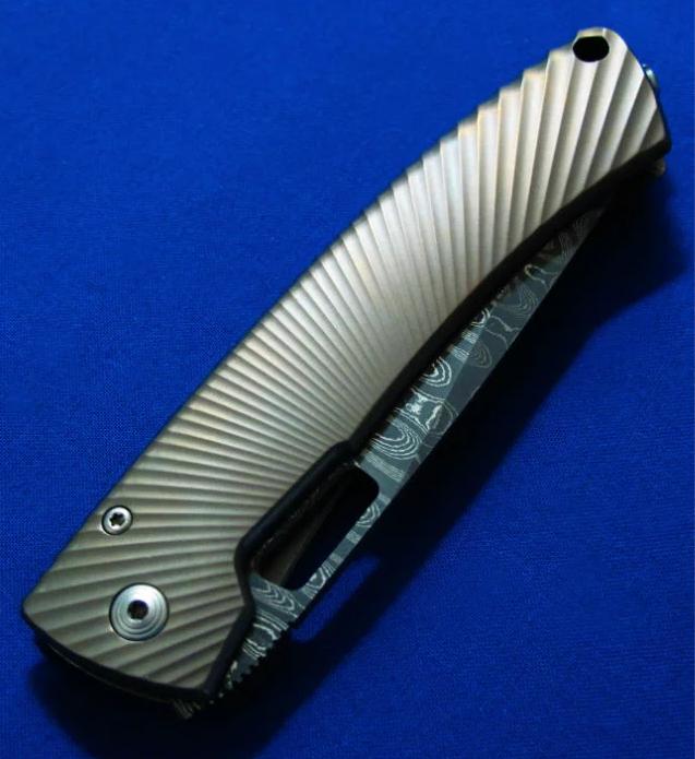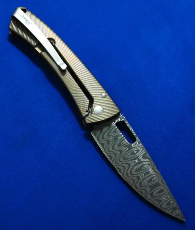 钢狮 TS1 大马士革钢 钛柄折刀(古铜色)。