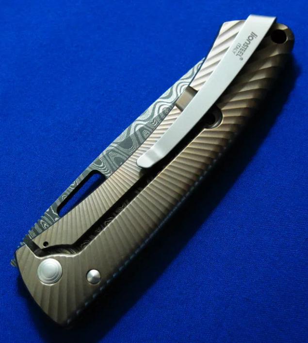 Lion Steel 钢狮 TS1 大马士革钢 钛柄折刀(古铜色)