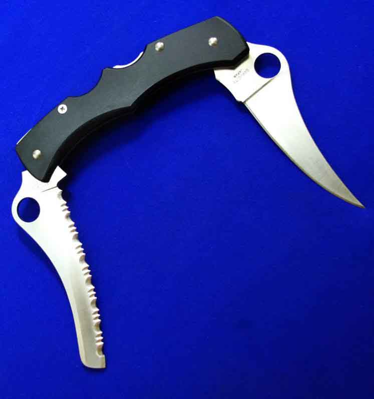 蜘蛛做过不少这类双开折刀,本款是顶配版本,也是最大的版本。