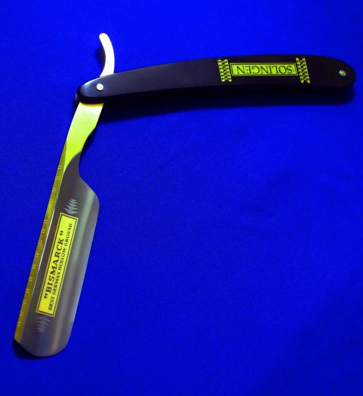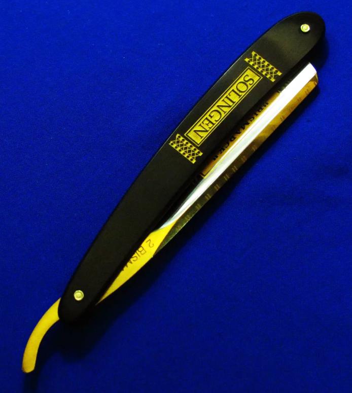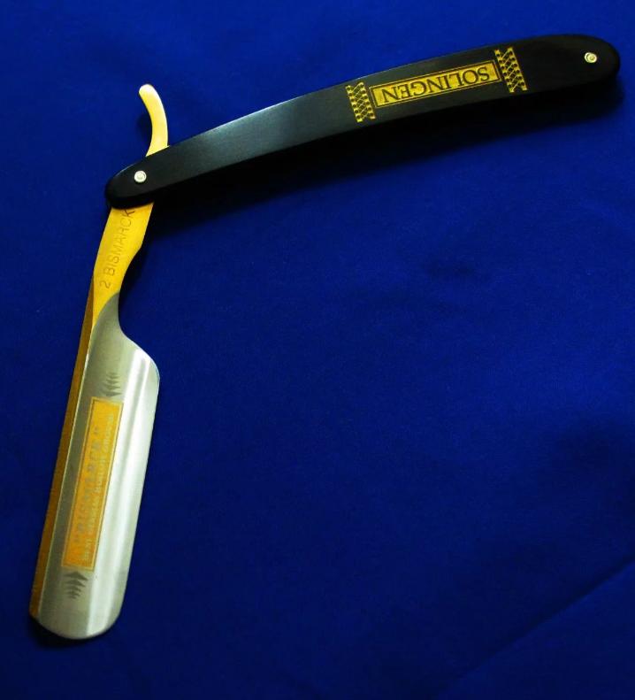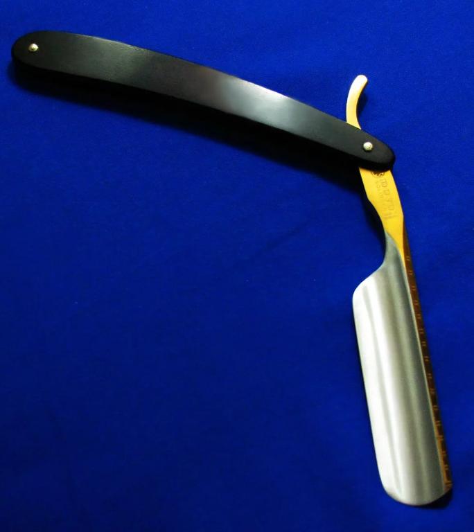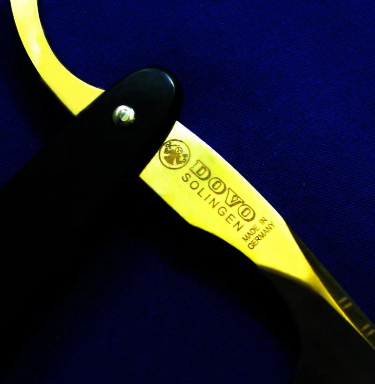 索林根DOVO 镀金手工剃刀。世界上最好的剃刀,创建于1906年的百年品牌。锋利度恐怖,手残党请谨慎把玩。刃材:Solingen Silver Carbon Steel,镀24K金。硬度:60-62。柄材:非洲乌木。产地:德国。