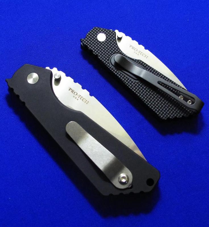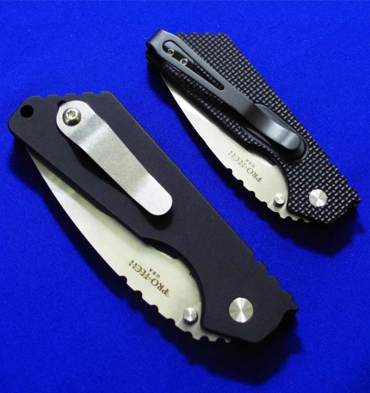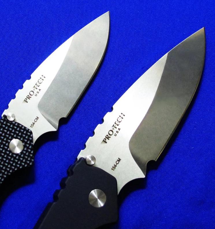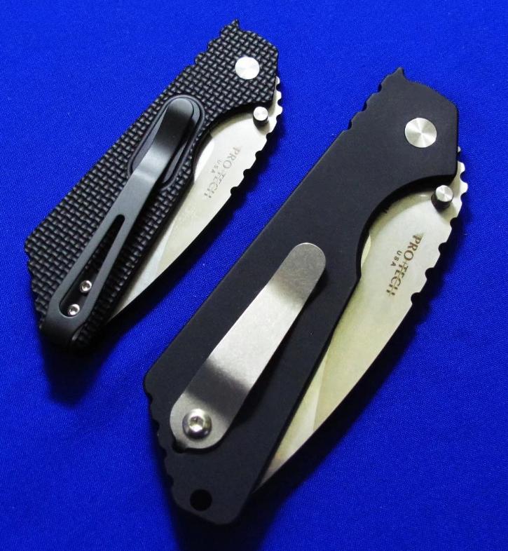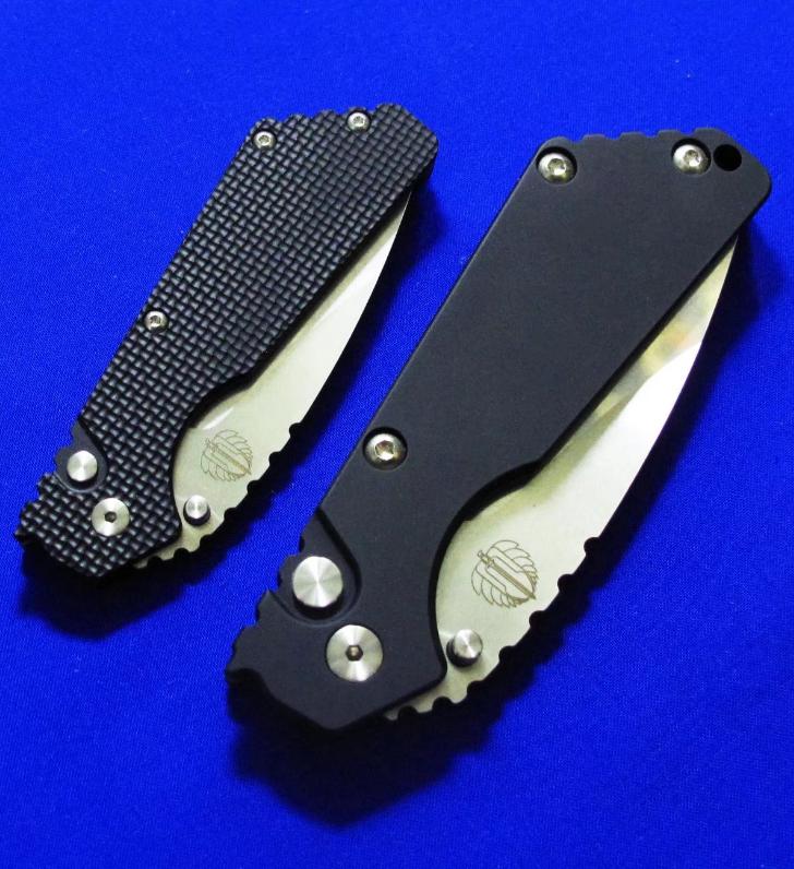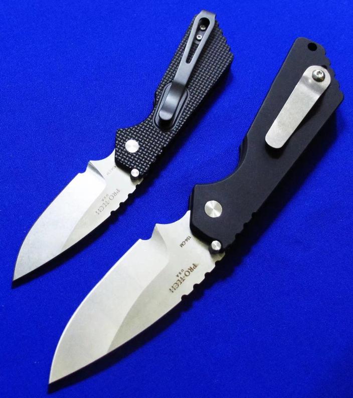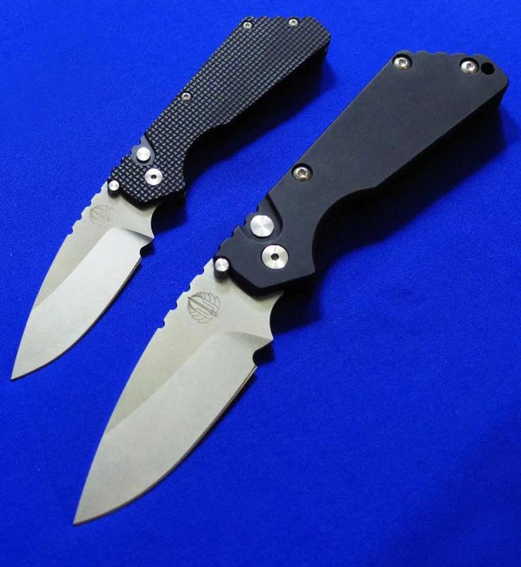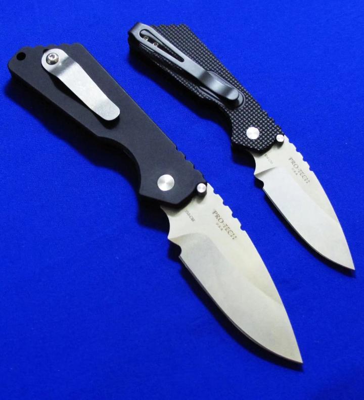 Protech 超技术 & Strider挺进者合作 PT(小)SNG(大)全自动侧跳。全长:16.5(小)20.8(大)cm。刃厚:3mm。刃材:154CM。硬度:60-62。柄材:T6061。产地:美国。