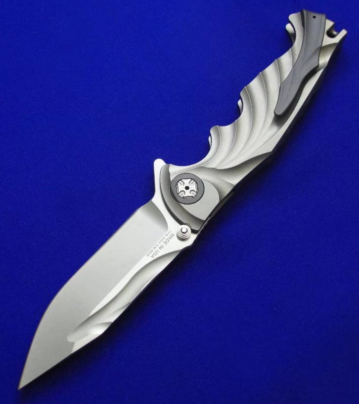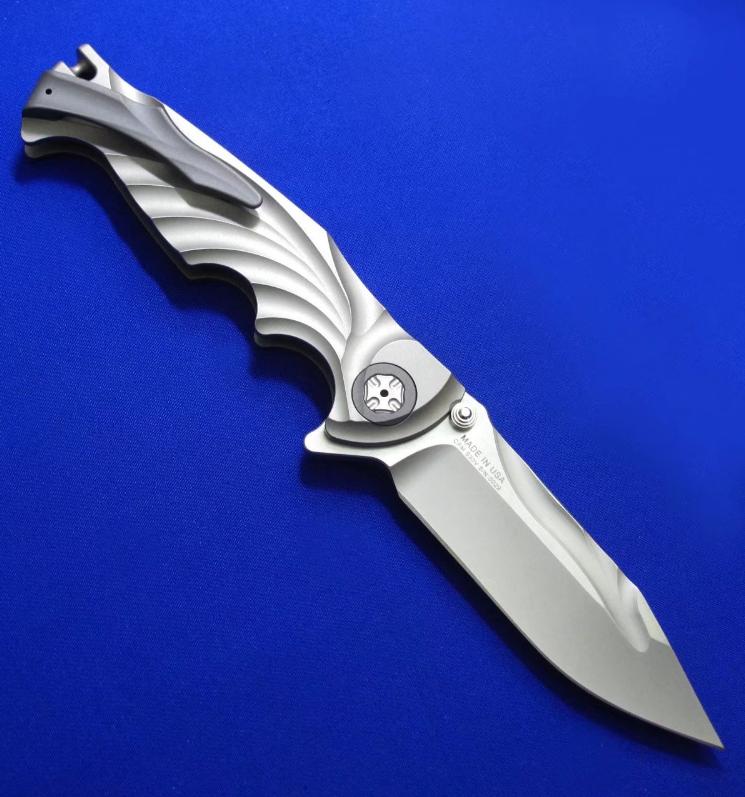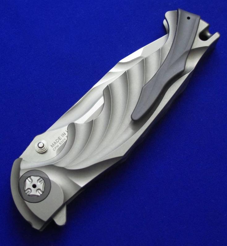 Brian Tighe 布莱恩.泰(加拿大刀匠协会现任主席)Flipper快开折刀。两种开刀方式,既可Flipper快开,也可传统(推刀钮)手动开启。 全长:23.4cm。 刃厚:5mm。 刃材:CPM S30V。硬度:60-62。柄材:钛合金。产地:加拿大。