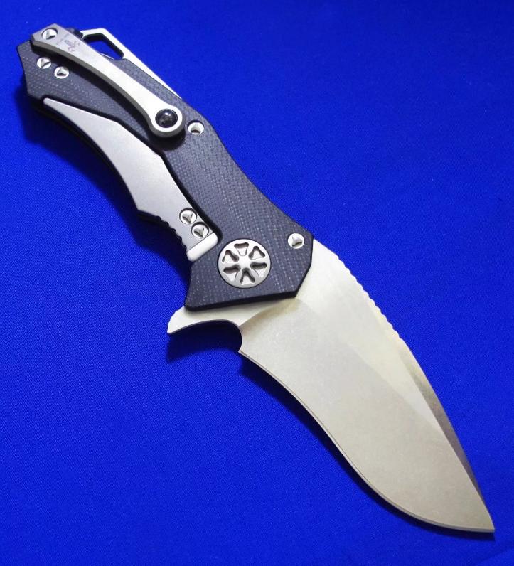柄材:钛合金,G10,腰夹镶嵌碳化钨珠。