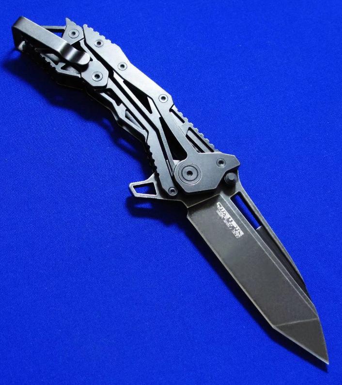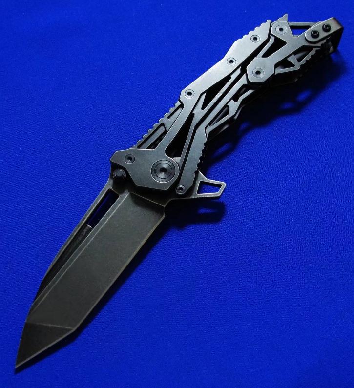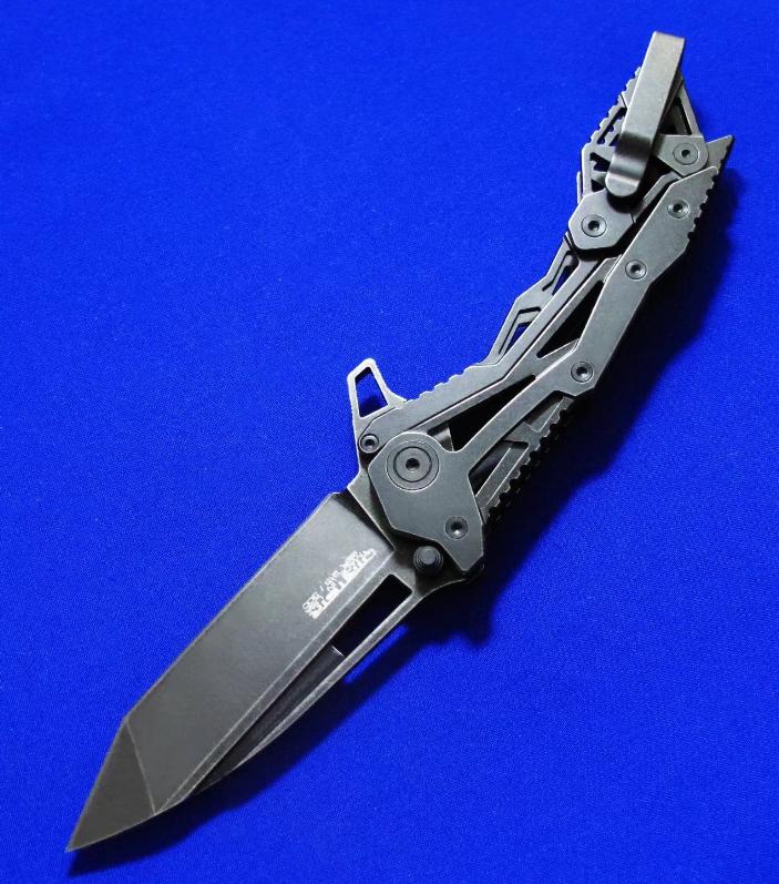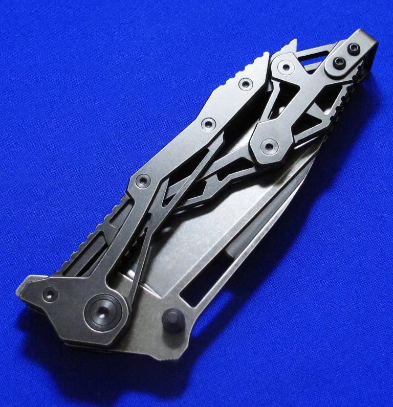 Quartermaster General Lee 机械刀。傻逼到极致的设计,你敢单手开刀,它就敢夹你手掌肉,爆疼(经测试,与手掌大小无关,与手型无关,是人就夹)。反人类设计排名第一,名字应该叫Rat Clip,当之无愧。价格爆贵,垃圾至尊。全长:21.5cm。刃厚:4mm。刃材:S35VN。硬度:60-62。柄材:钛合金。产地:美国。