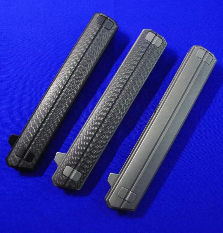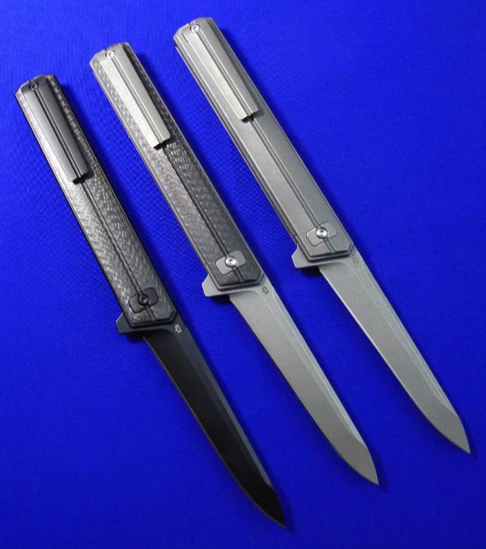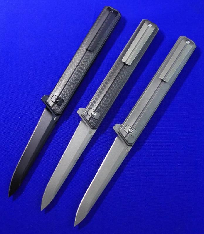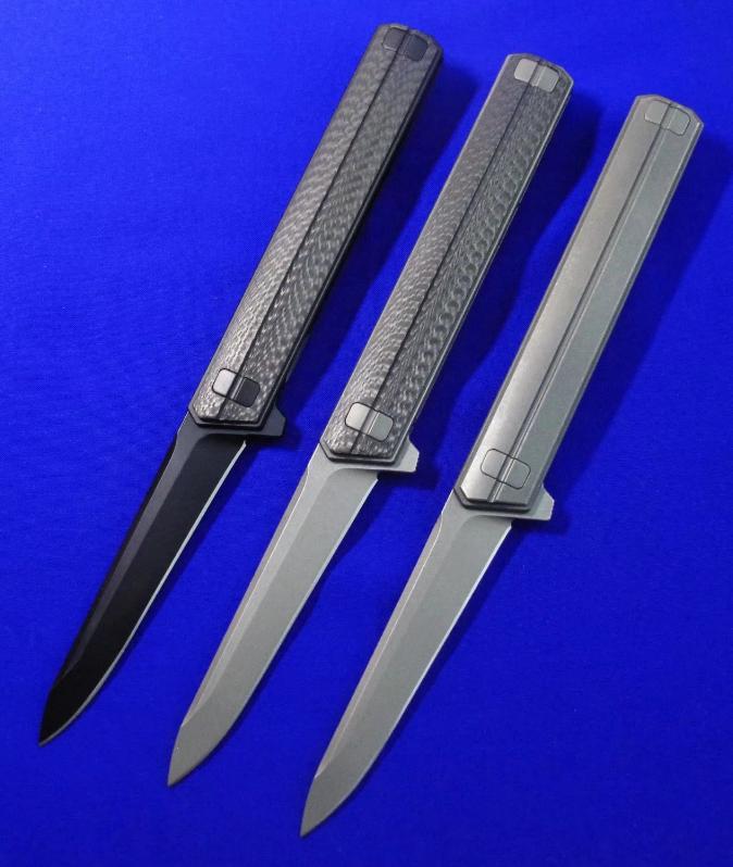 Quartermaster Qwaiken XL Flipper快开折刀。此刀市面已有高仿,购买请注意识别。全长:24.3cm。刃厚:4mm。刃材:S35VN。硬度:60-62。柄材:钛合金(右)碳纤维(左、中)。产地:美国。
