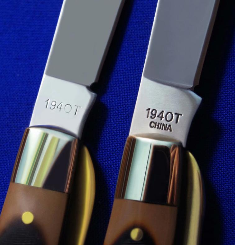 鞘材:牛皮。产地:美国(上),中国代工(下)。