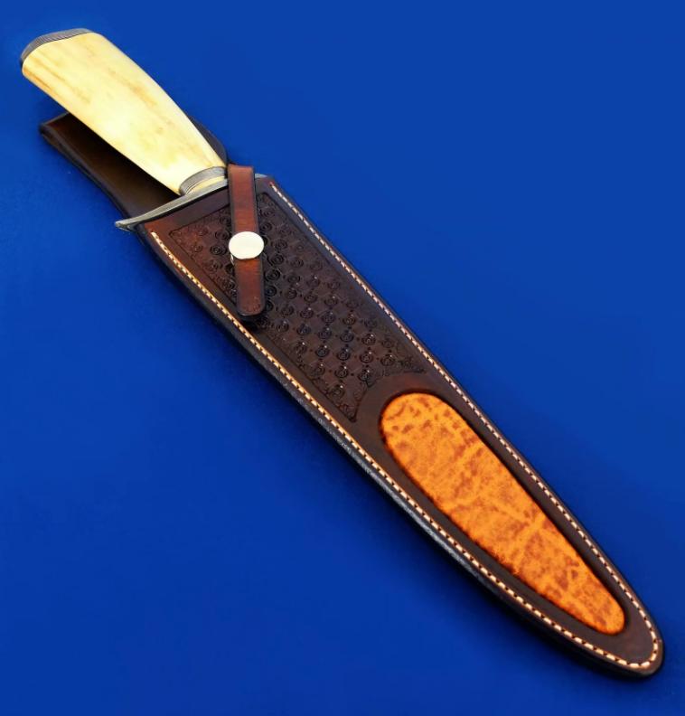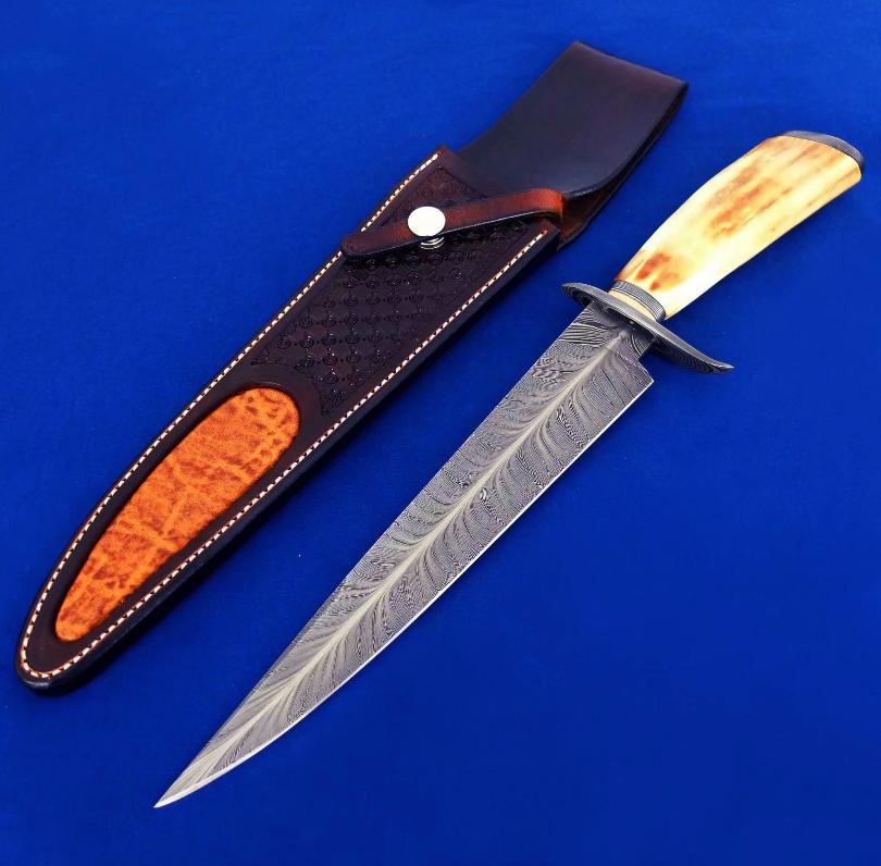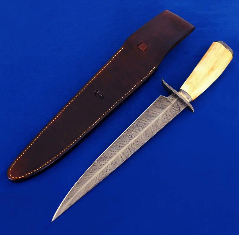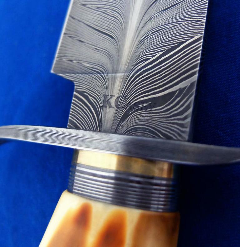 柄材:长颈鹿腿骨(握柄),大马士革(护手),大马士革+黄铜(柄箍)。