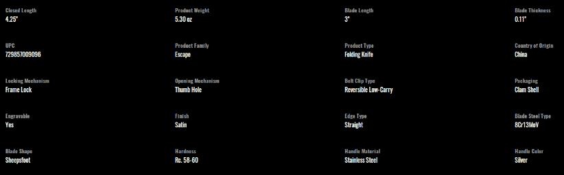 SOG ESCAPE FL 全钢一体锁 折刀。全新无瑕疵,缺包装。