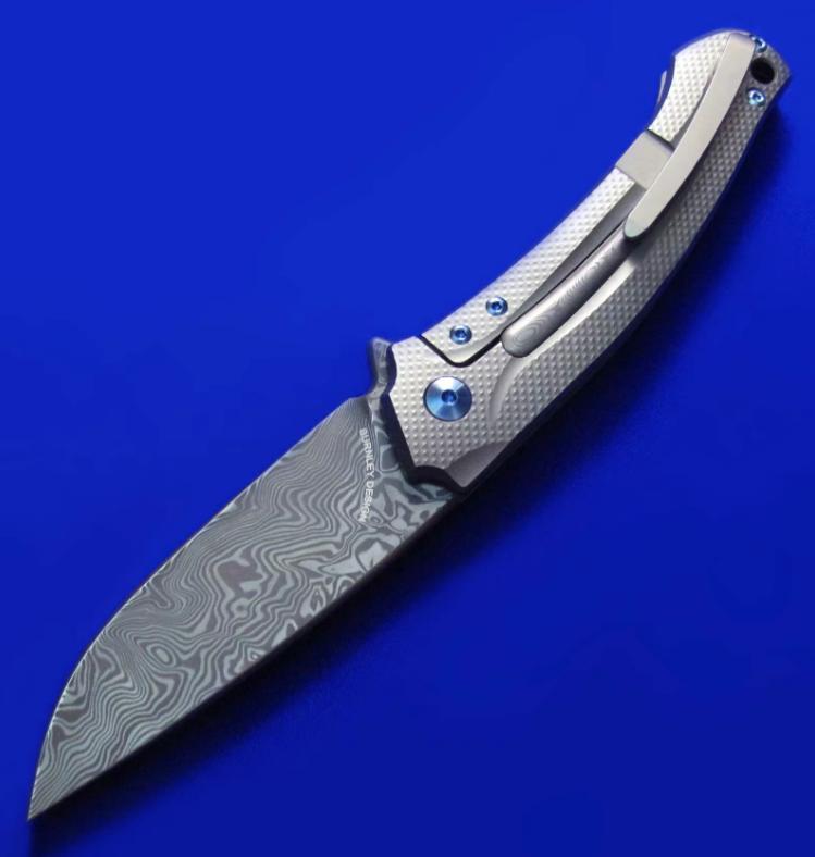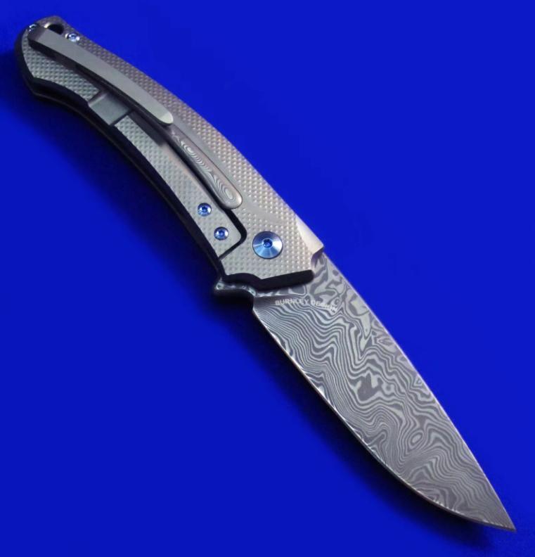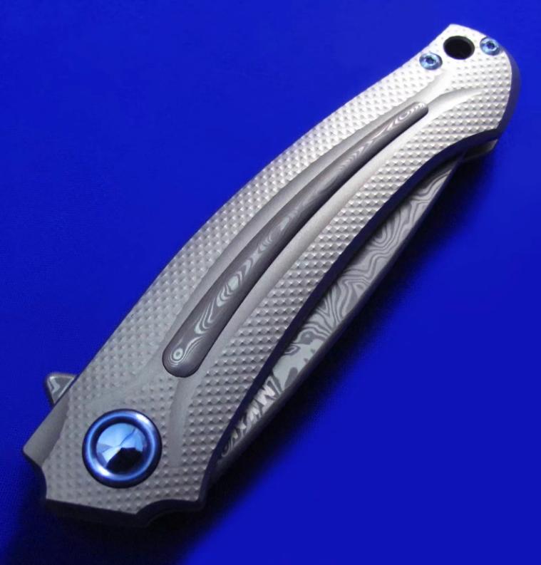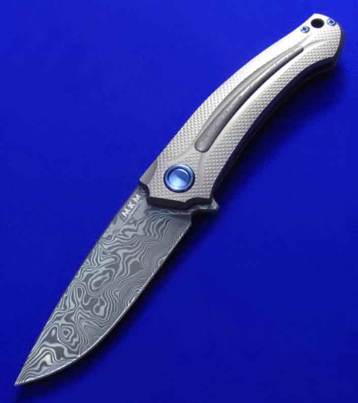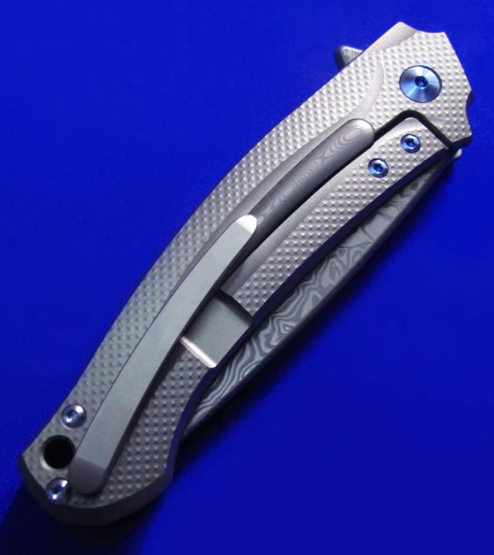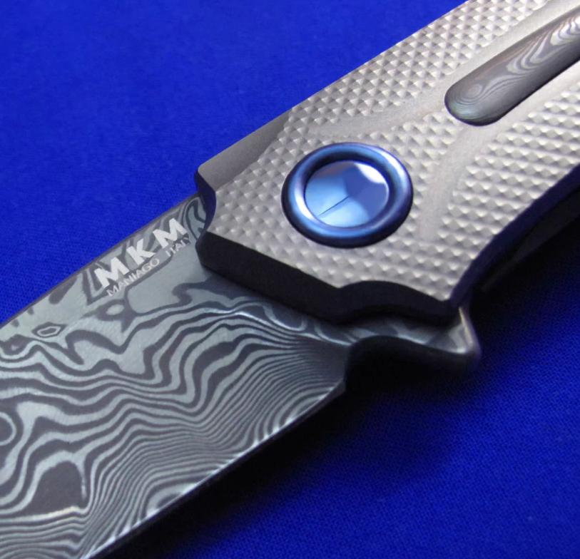 MKM Flipper快开折刀,顶配版。本款另有价格便宜的低配版本(手柄两侧G10贴片,镶嵌铝条)将在下批到货,本次暂无货。全长:20.3cm。刃厚:4mm。刃材:瑞粉大马。硬度:60-62。柄材:钛合金,镶嵌大马士革装饰条。产地:意大利。