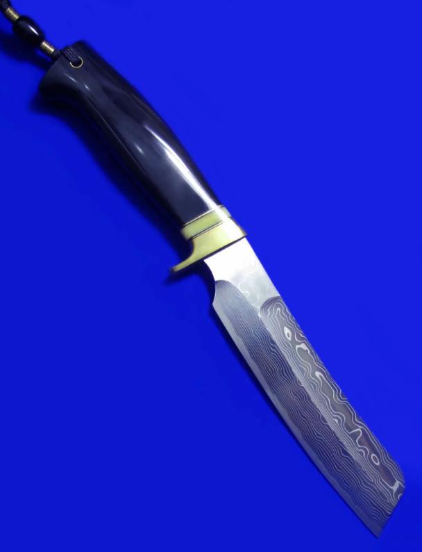 刃材:蓝钢大马士革。