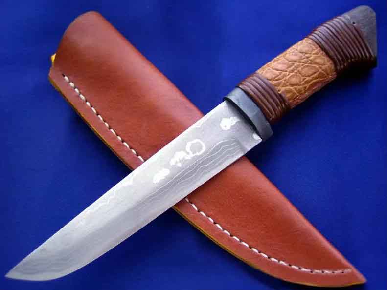 佐治武士 鳄鱼皮柄 大马士革直刀
