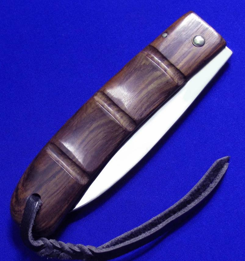 Citadel & 原幸治 合作款 手工绅士折刀,无锁。 木柄是一整块料挖出来的。 全长:19cm。 刃厚:2.8mm。 刃材:52100。 硬度:60-62。 柄材:COCOWOOD。 产地:柬埔寨。