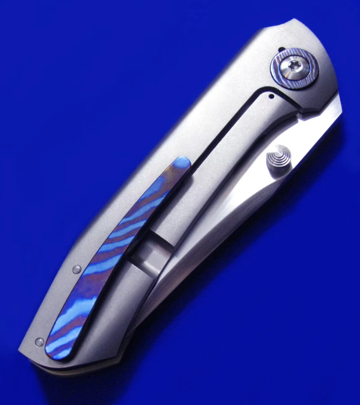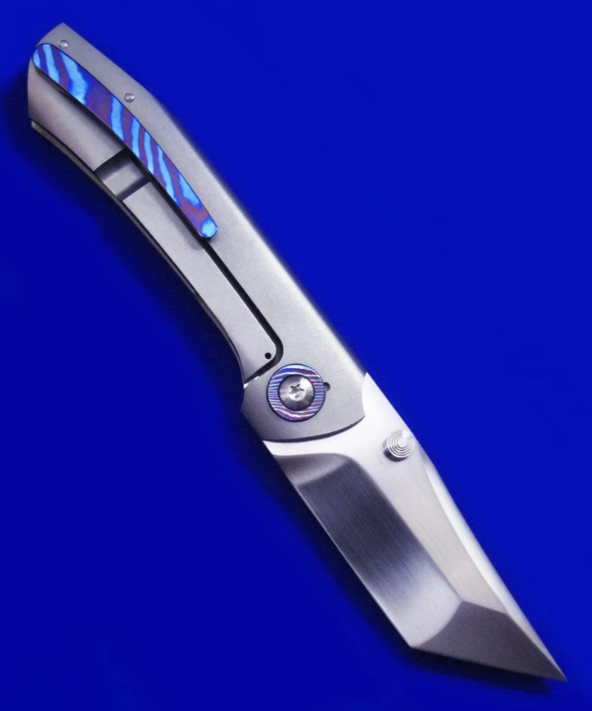 柄材:钛合金,彩色大马士革,西屋纸基米卡塔。