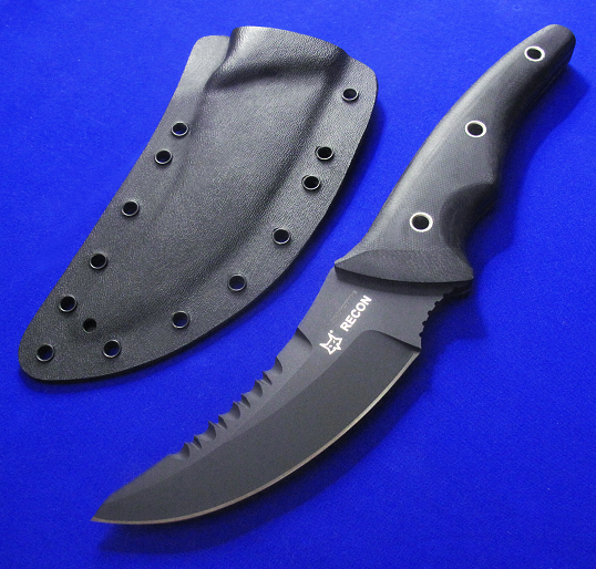 FOX绝版FX-512 Recon侦察兵,PROTOTYPE(原型刀),孤品唯一。 全长:26.5cm。 刃厚:4.8mm。 刃材:N690CO。 硬度:58。 柄材:G10。 鞘材:K鞘。 产地:意大利。