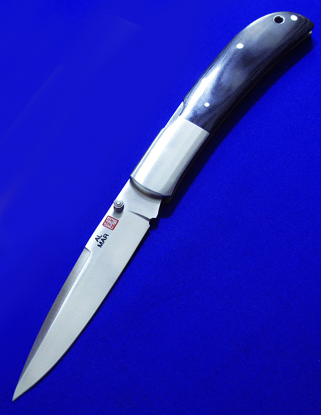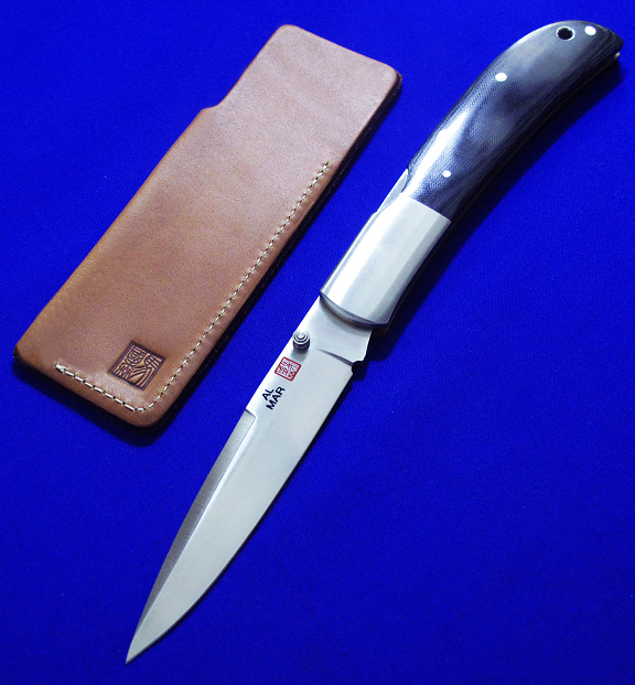 马国森 Eagle 经典绅士折刀,大号顶配,Prototype原型版,孤品唯一。 全长:22.2cm。 刃厚:2.8mm。 刃材:VG-10。 硬度:60-62。 柄材:G10。 鞘材:牛皮。 产地:日本。