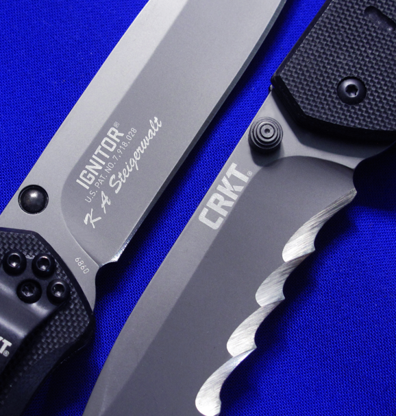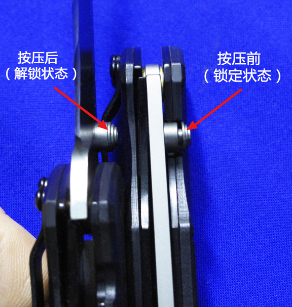 CRKT 推刀钮 按压解锁 结构 半自动侧跳。 推刀钮内藏按压机关,不按压只推,是推不开的。 全世界绝无仅有的专利结构,自动刀爱好者可以试试。