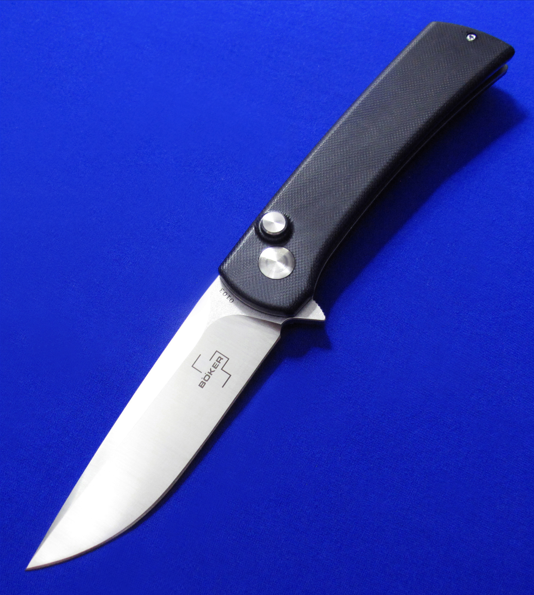 BOKER博克 Flipper快开 按钮大锁折。 请注尺意寸,相当大。 手柄面表做了密细的防滑纹处理,手感相当不错。