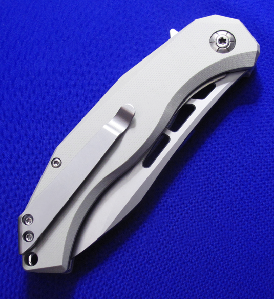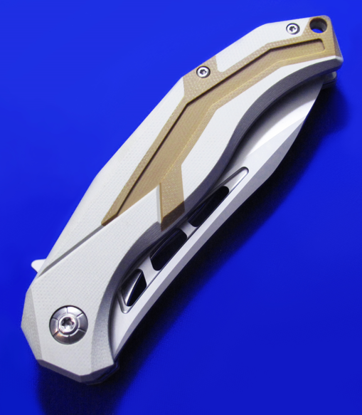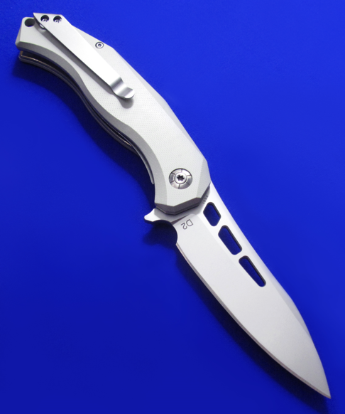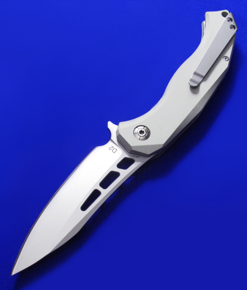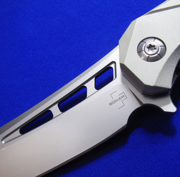 BOKER博克 Flipper快开大折。 这款Flipper蓄力不大,开刀时刀尖需稍微向下(借些刀片的重力)。 全长:22cm。 刃厚:3.2mm。 刃材:D2。 柄材:G10贴片,不钢锈内衬。 产地:中国代工。