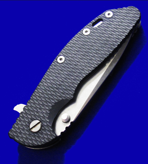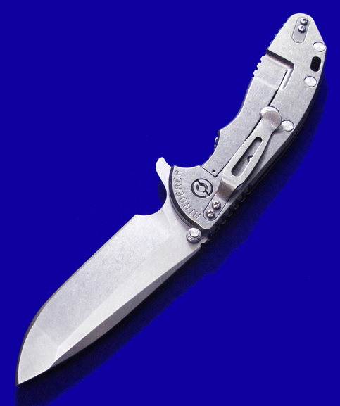 早期垫片结构,非轴承结构,按压快开鳍只能弹出约90度(完全展开为180度),剩下行程需甩腕(快开)或推开刀钮(缓开)。 全长:23.4cm。 刃厚:4.8mm。 刃材:CTS-XHP。 柄材:钛合金,G10。 产地:美国。