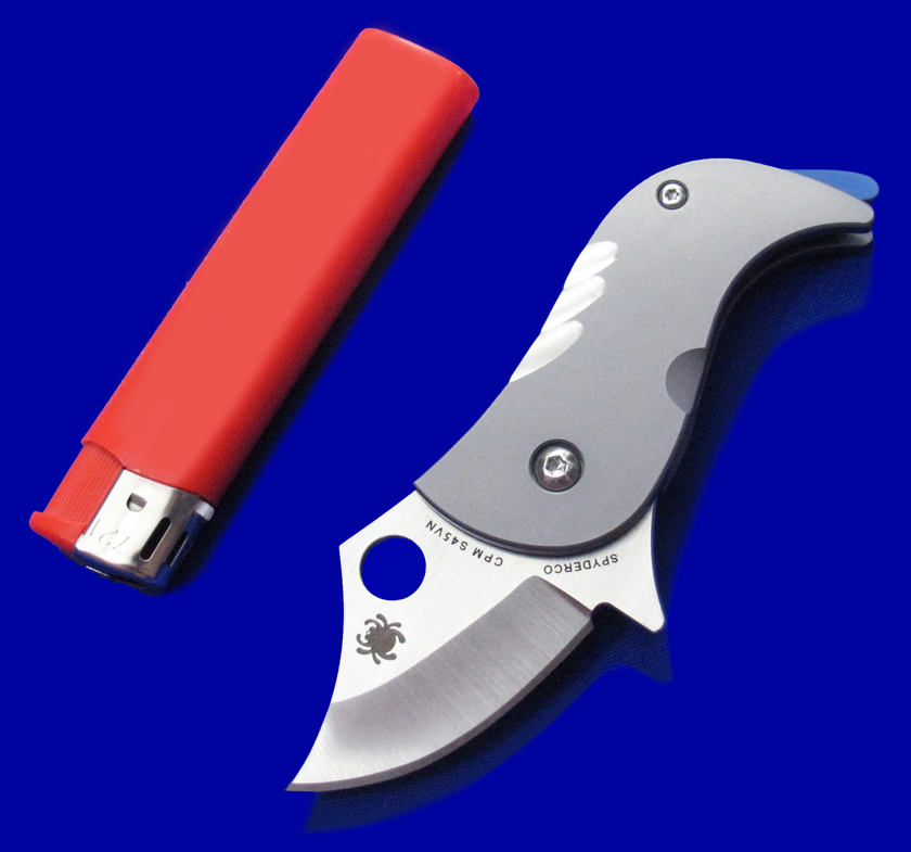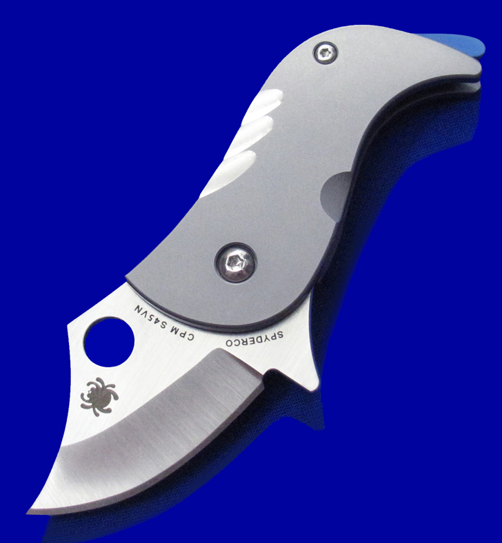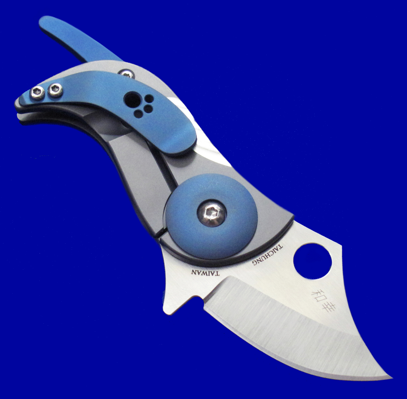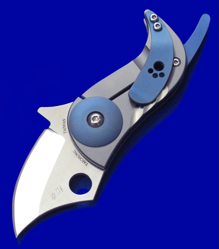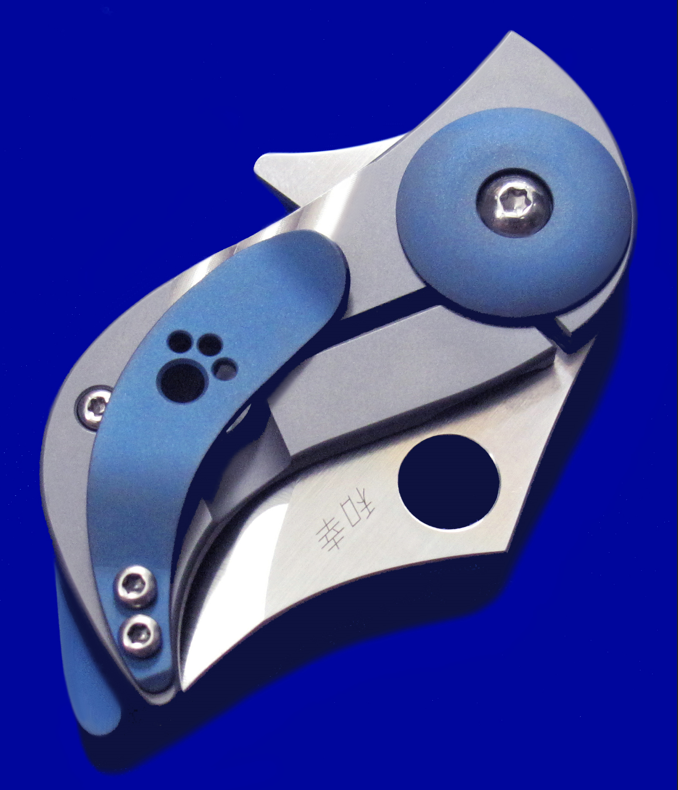 爱默生蜘蛛C256TIP,全钛一体锁,樱井和幸设计。 超迷你,但剃刀般锋利,把玩注意安全。 另:柄尾的蓝色钛杆可转动,但研究半天,并未发现有任何实际功能,应该只是作为小狗尾巴的造型零件。 全长:10.5cm。 刃厚:2.3mm。 刃材:CPM S45VN。 柄材:钛合金。 产地:台湾。
