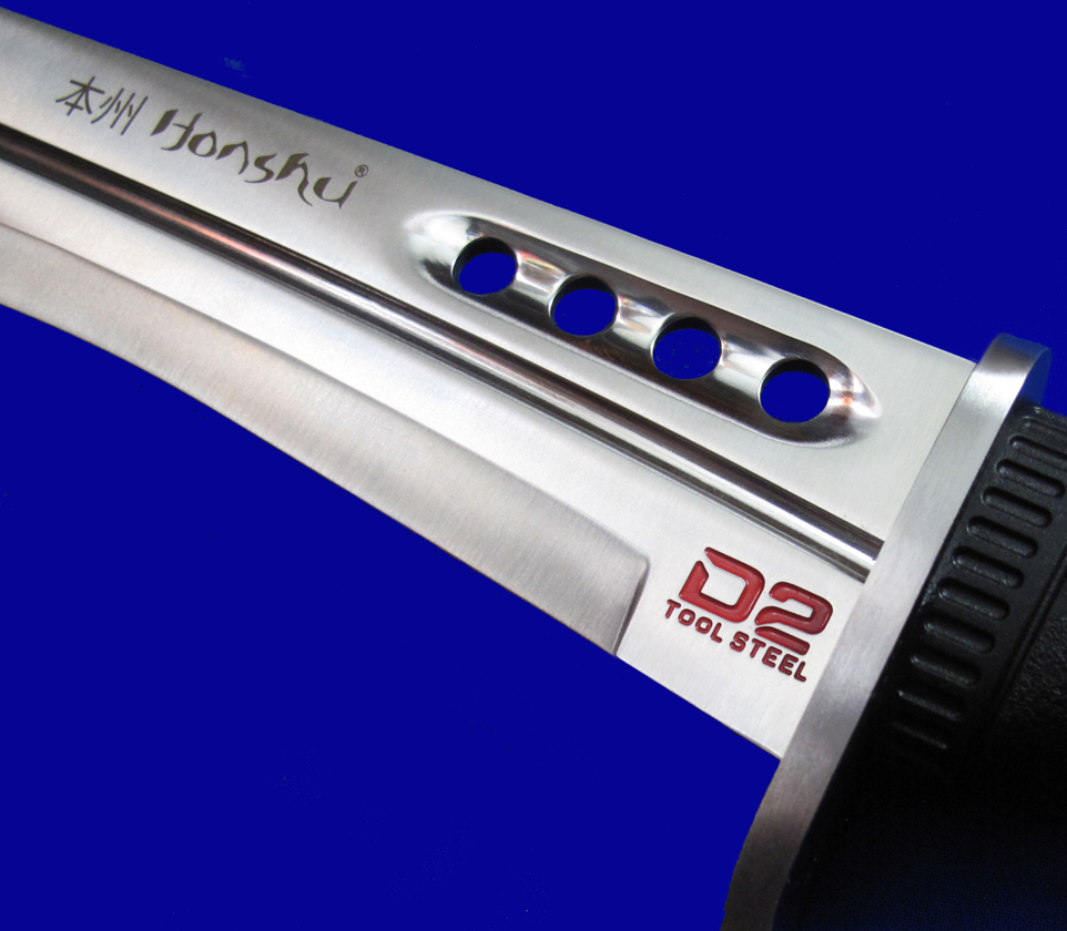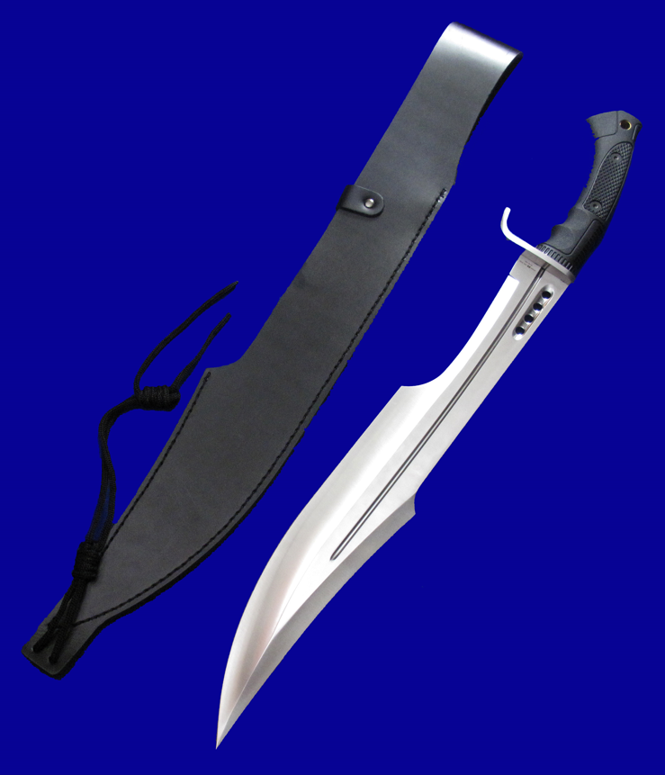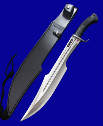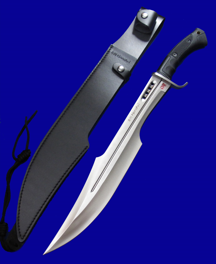 United斯巴达大型战刀,高配版本。 红D2系列目前是United旗舰产品,做工用料均明显优于敢死队系列。 全长:59cm。 刃厚:5mm。 刃材:D2。 柄材:强化尼龙纤维。 鞘材:牛皮。 产地:中国代工。