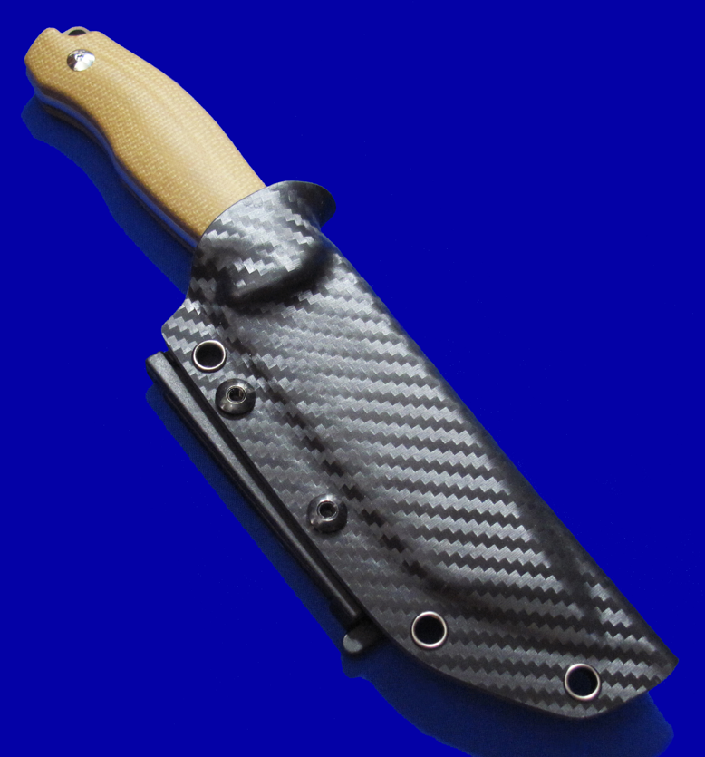 提示:目前包括微技术在内的众多品牌,都开始使用碳纤维纹理K鞘,虽然这种纹理酷似碳纤维,但它其实是压制了碳纤维纹理的K鞘,与传统K鞘并无材料差异,只是表面热压了纹理而已。尽管有些商家在编写参数时写作“碳纤维鞘”,但目前地球上并不存在碳纤维刀鞘,所有纹理酷似碳纤维的刀鞘,100%都是K鞘。