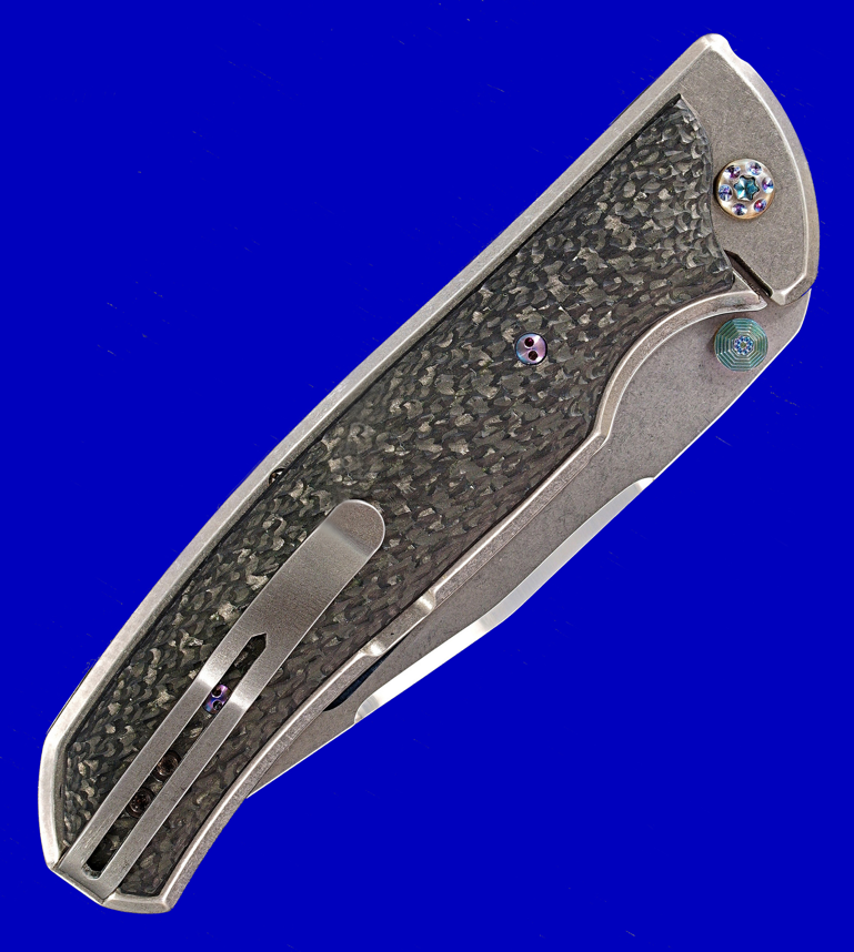 既可全自动侧跳(机关隐藏),亦可传统手动开启,两种玩法。 全长:20.8cm。 刃厚:3mm。 刃材:S35VN。 柄材:碳纤维,钛合金。 产地:美国。