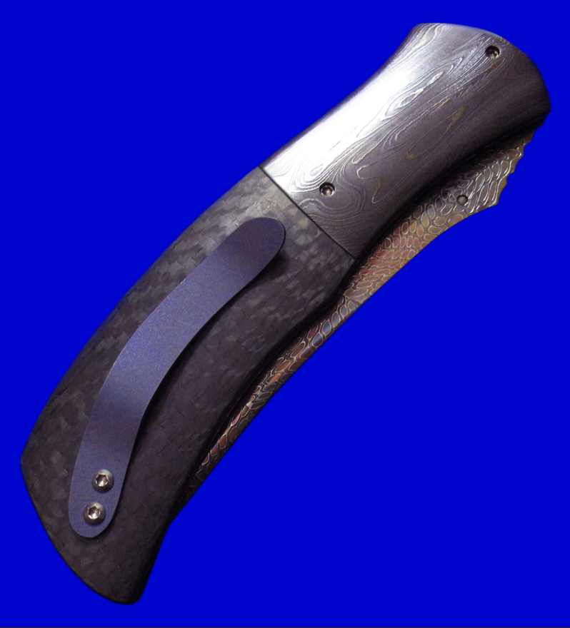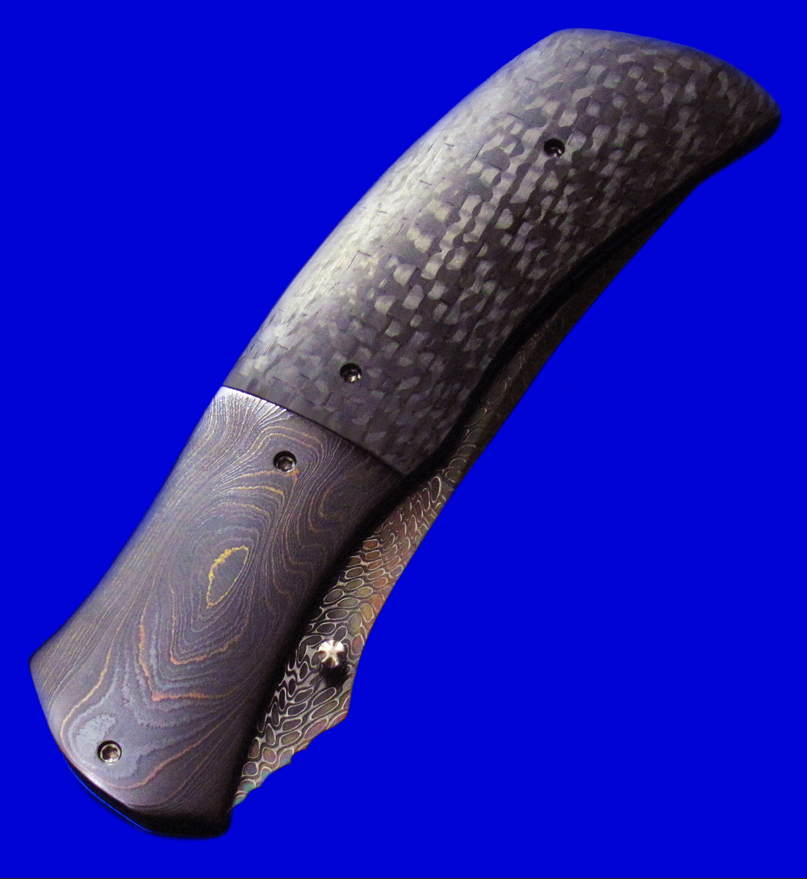 柄材:锆马刀枕,碳纤维贴片,钛合金内衬及腰夹。
