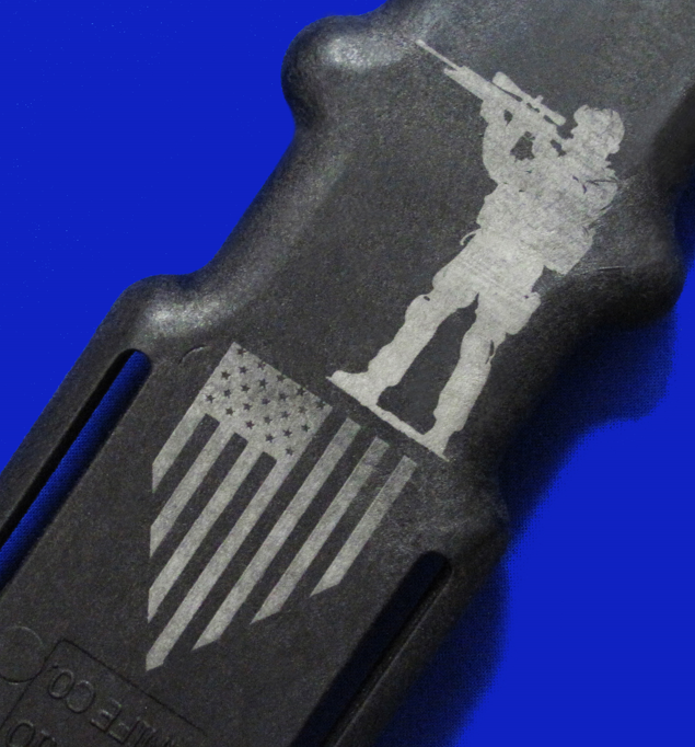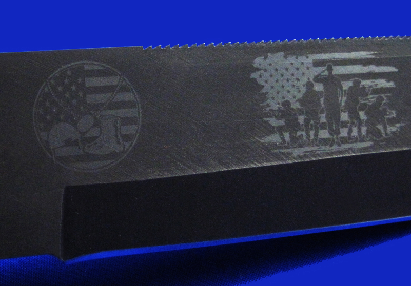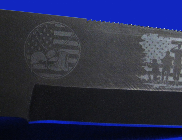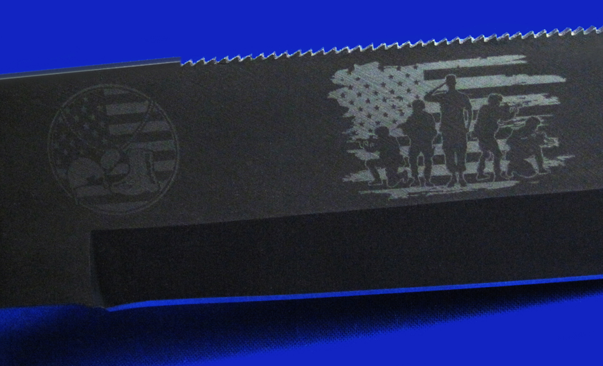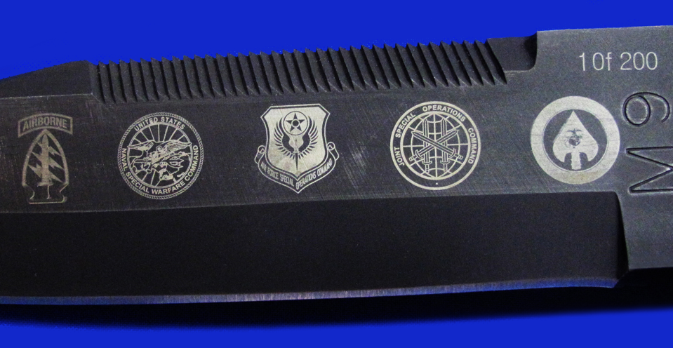 刀鞘正面:USSOCOM(美国特种作战司令部)。下辖6个单位,囊括美军全部5个特种作战单位(见刀片正面),和一个非作战单位(联合特种作战学校)。